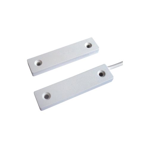 Contatto magnetico per superficie di grande portata conforme con la norma europea EN50131-2-6 grado 2 classe ambientale II. Profilo estremamente ridotto sottile e stretto, adatto anche per installazioni su infissi in materiale ferromagnetico. Contatto N.C. con anta chiusa, cavo di collegamento 4 poli 3m. Disponibile in vari colori. Fornito con biadesivo
