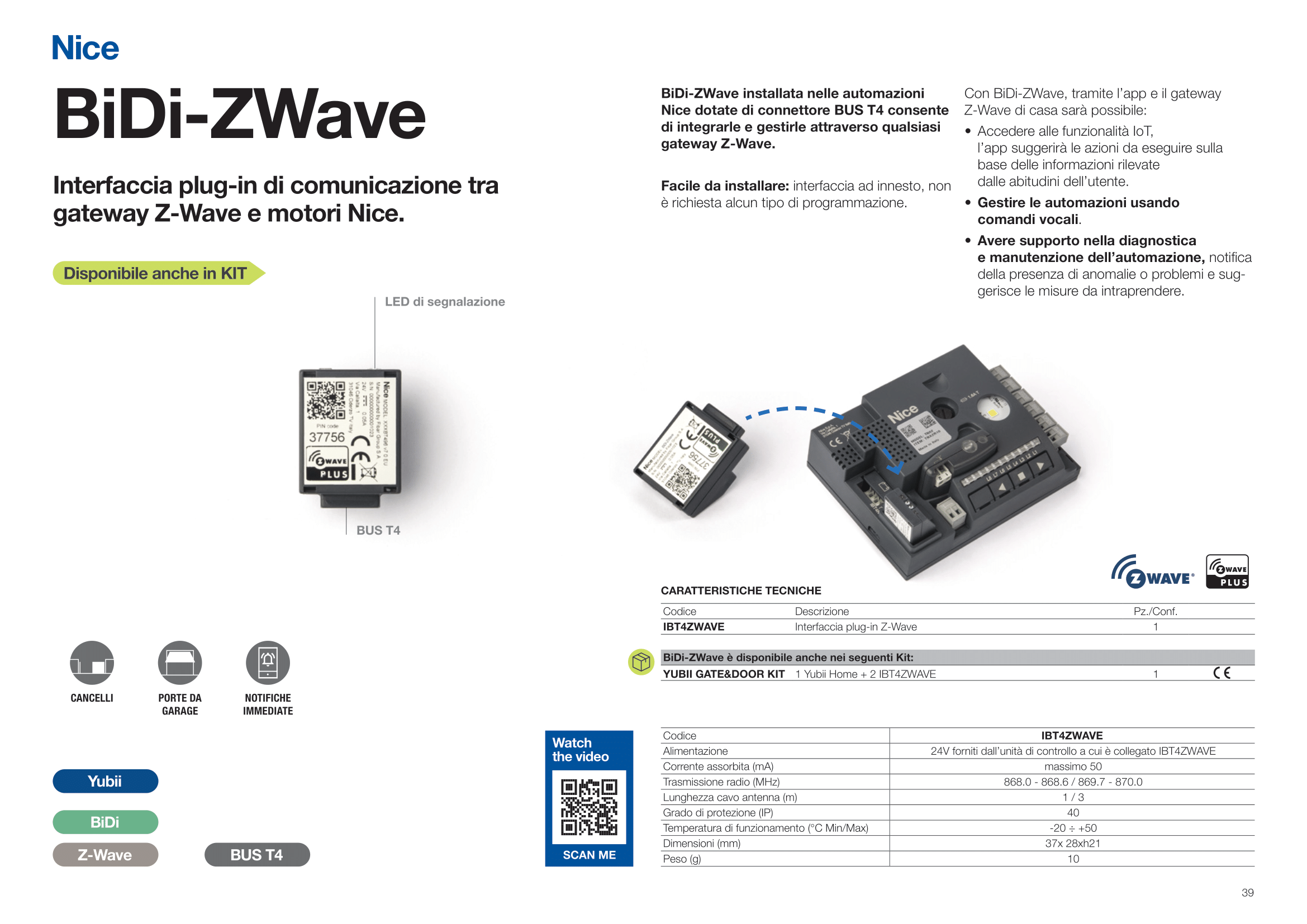 BiDi-ZWave installata nelle automazioni Nice dotate di connettore BUS T4 consente di integrarle e gestirle attraverso qualsiasi gateway Z-Wave.